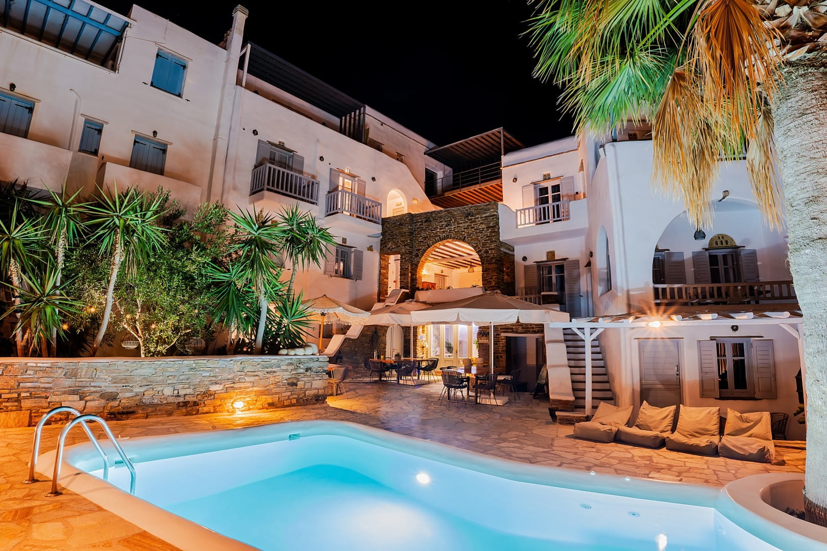 Εμπνευσμένο από την Κυκλαδίτικη αρχιτεκτονική και σε απόλυτη αρμονία με την αισθητική του νησιού, αποτελεί ένα γαλήνιο καταφύγιο εξοπλισμένο με ανέσεις και παροχές υψηλής ποιότητας.